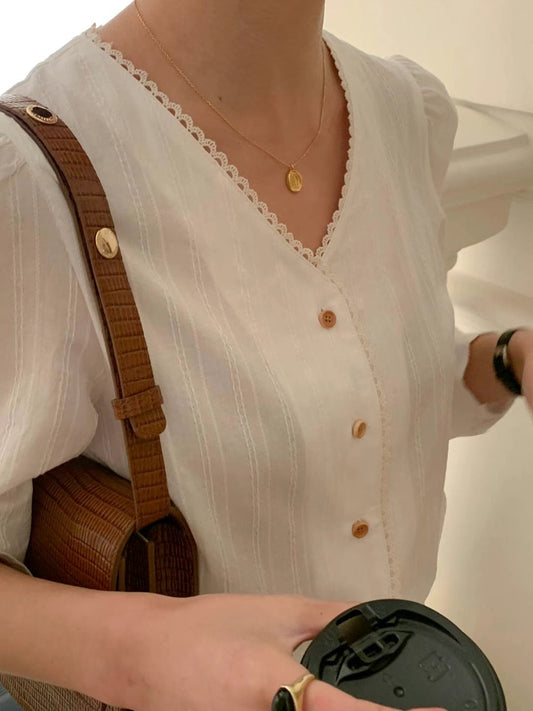 Lace Trim Textured Blouse